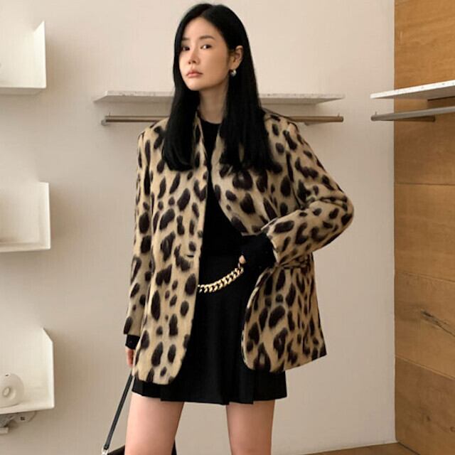 ジャケット レディース 秋冬 ヒョウ柄 レオパード ウール 長袖 かっこいい 一枚映え おしゃれ 個性的 S/M/L/XL