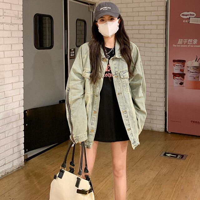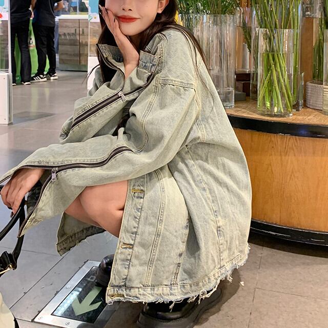 ジャケット レディース デニム 色落ち ブルゾン 長袖 カジュアル ジップアップ かっこいい ストリート オーバーシルエット 春秋 オーバーサイズ ルーズ