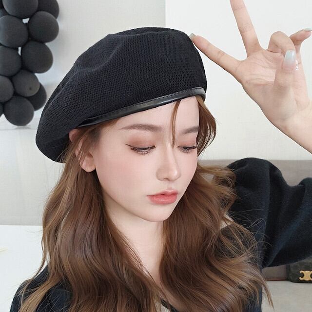 ベレー帽 レディース 帽子 通気性 かわいい おしゃれ トレンド カジュアル シンプル ブラック