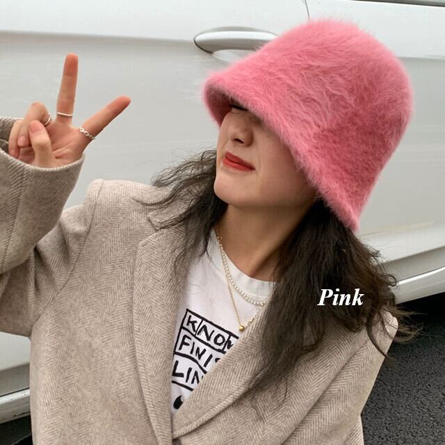 ハット レディース 帽子 バケハ バケットハット もこもこ ファー カラバリ豊富 ピンク/ベージュ/ブラック/グレー/カーキ