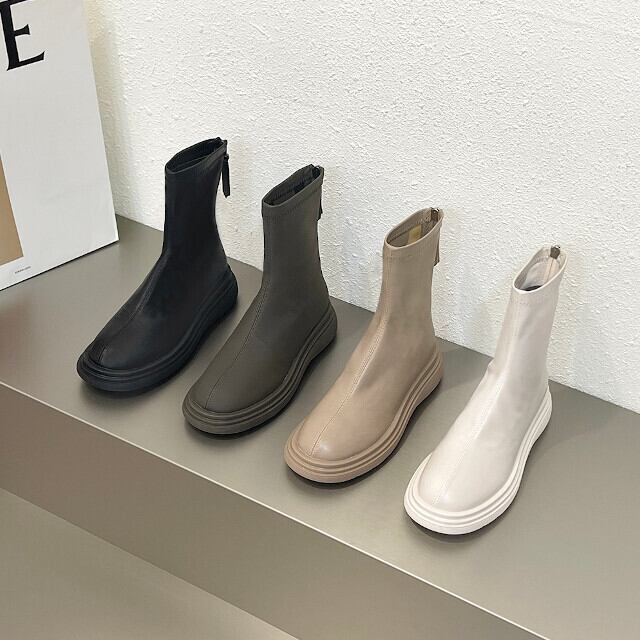 ブーツ レディース ショート丈 厚底 ショートブーツ 靴 カジュアル かっこいい シンプル 35(22.5cm) 36(23cm) 37(23.5cm) 38(24cm) 39(24.5cm) 40(25cm) ベージュ/ブラック/グレーグリーン/ミルクティー