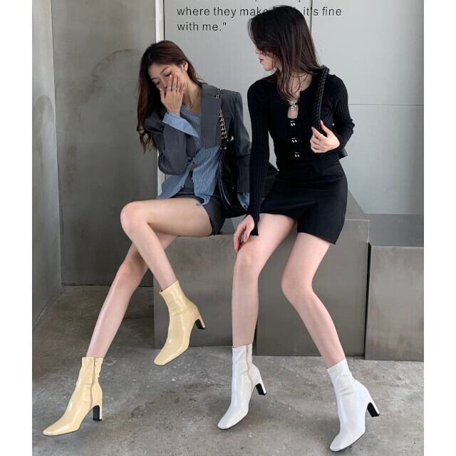 ブーツ レディース ショート丈 厚底 ショートブーツ 靴 チャンキーヒール カジュアル かっこいい シンプル 35(22.5cm) 36(23cm) 37(23.5cm) 38(24cm) 39(24.5cm)ブラック/ベージュ/ブルー/イエロー