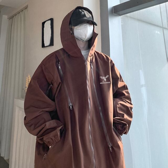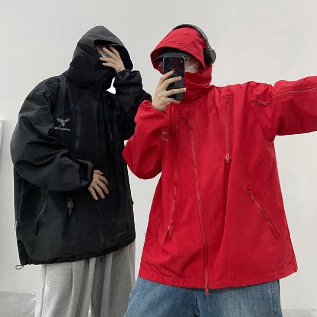 【予約販売】ウインドブレーカート ブルゾン アウター トラックジャケット フード 防寒 メンズ ブラック/レッド/ブラウン お洒落 こなれ感 ベーシック韓国 トレンド 秋 冬 S/M/L/XL/2XL