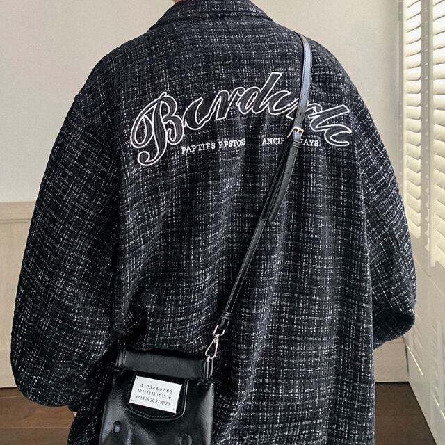 【予約販売】ブルゾン 防寒 メンズ アウター チェック柄 バックデザイン ジャケット ショート丈 オーバーサイズ ブラック ホワイト こなれ感 お洒落 韓国 トレンド 秋 冬 M/L/XL