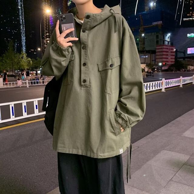 【予約販売】パーカー プルオーバー メンズ アウター ミリタリー 防寒 オーバーサイズ カーキ ブラック カジュアル 男前 こなれ感 お洒落 韓国 トレンド 秋 冬 M/L/XL/2XL/3XL