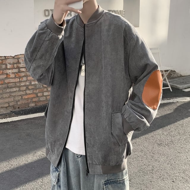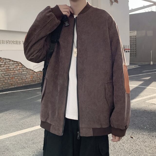 【予約販売】スタジャン ブルゾン ジャンバー 長袖 コーデュロイ アウター ショート丈 メンズ グレー/ブラック/ブラウン 無地 お洒落 こなれ感 韓国 ベーシック 秋 冬 大きいサイズ M/L/XL/2XL/3XL/4XL/5XL