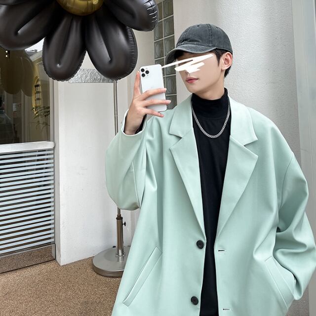 【予約販売】テーラードジャケット 無地 アウター ジャケット メンズ グリーン ブラック グレー カジュアル こなれ感 お洒落 韓国トレンド 大きいサイズ 春 秋 冬 M/L/XL/2XL/3XL