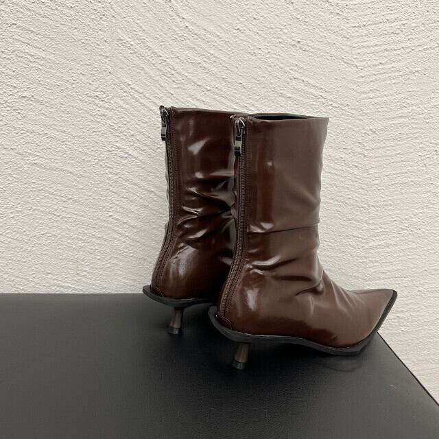 ブーツ レディース レザー ショート丈 ヒール エナメル レザー 靴 カジュアル 秋冬 かっこいい シンプル ブラック/ホワイト/ブラウン/グリーン 35(22.5cm) 36(23cm) 37(23.5cm) 38(24cm) 39(24.5cm)
