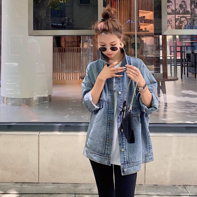 デニムジャケット レディース Gジャン ヴィンテージ アウター 春秋 オーバーシルエット 長袖 おしゃれ かっこいい カジュアル 定番 色落ち ライトブルー S/M/L/XL