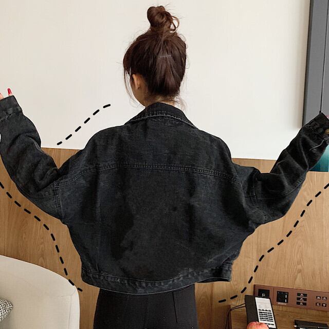 デニムジャケット レディース Gジャン ヴィンテージ アウター 春秋 オーバーシルエット 長袖 おしゃれ かっこいい カジュアル 定番 色落ち ブラック S/M/L