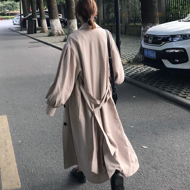 ロングコート トレンチコート レディース アウター ロング丈 長袖 かっこいい カジュアル おしゃれ シンプル 春秋 アプリコット/ブラック