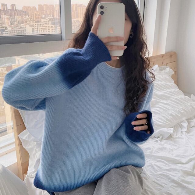 セーター レディース トップス ニット グラデーション 一枚映え おしゃれ 個性的 ハイセンス デザイン性 オーバーシルエット ピンク/ブルー/グリーン/オレンジ/クリームブルー