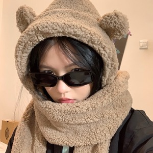 【予約販売】もこもこボア クマ耳 フードマフラー メンズ レディース ベージュ/グレー/ホワイト 可愛い 温かい アウトドア ネックウォーマー アニマル帽子 防寒 イヤーウォーマー 耳当て お洒落 韓国 トレンド