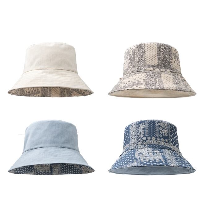 【予約販売】バケットハット メンズ リバーシブル 帽子 ハット 無地 ペイズリー柄 アウトドア キャンプ ブラック/オフホワイト/ブルー/ベージュ キャップ ストリート スポーティー ダンス こなれ感 お洒落 韓国 トレンド
