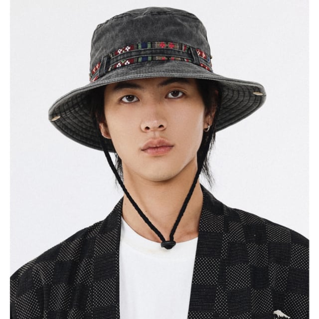 【予約販売】バケットハット メンズ ひも付き 帽子 ツバ広 ハット 無地 デニム アウトドア キャンプ キャップ ストリート スポーティー ダンス こなれ感 お洒落 韓国 トレンド