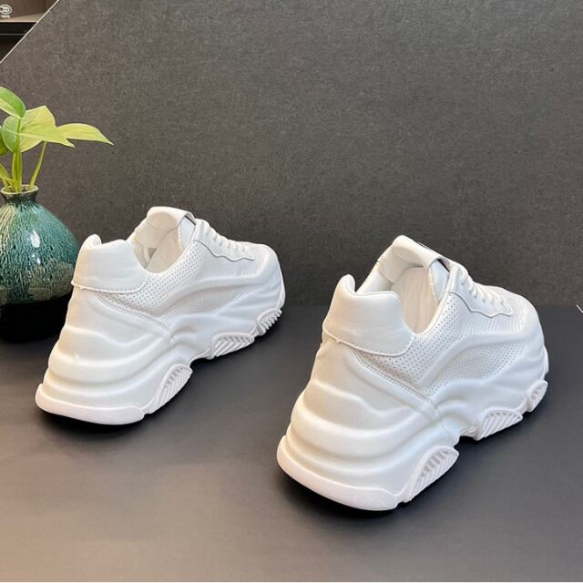 【予約販売】ダッドスニーカー ワンカラー 厚底 メンズ アグリースニーカー レースアップ ホワイト グリーン ブラック お洒落 カジュアル ストリート 24cm/24.5cm/25cm/25.5cm/26cm/26.5cm