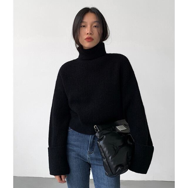 ニット レディース セーター トップス タートルネック 秋冬 ショート丈 ゆったり シンプル かっこいい おしゃれ ベーシック 脚長効果 グレー/ブラック/ブラウン S/M/L