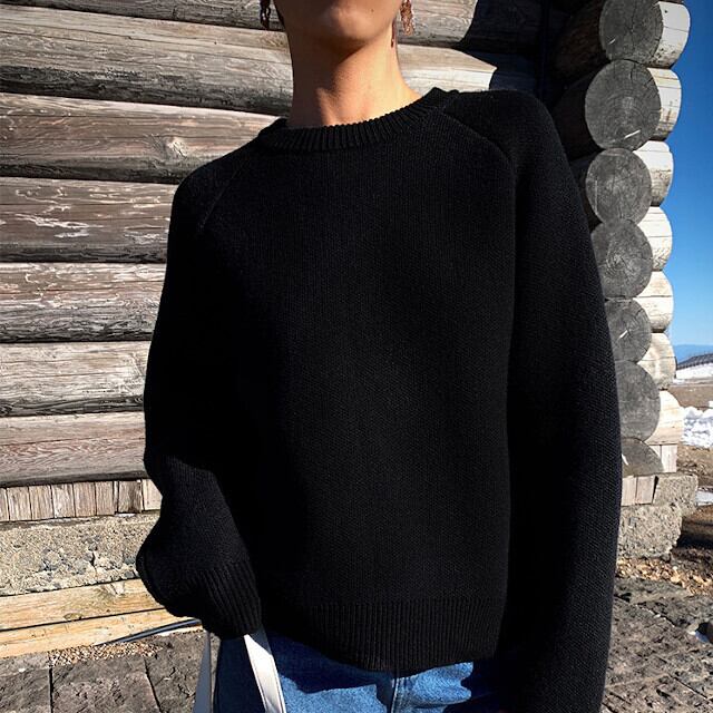 ニット レディース セーター トップス 秋冬 ゆったり ラウンドネック シンプル かっこいい おしゃれ 大人可愛い ベーシックブルー/グリーン/ブラック S/M/L