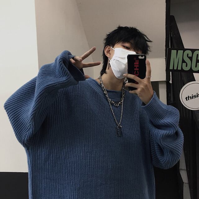 【予約販売】ニット ユニセックス セーター ペア お揃い カップル ラウンドネック ブラック グレー ブルー オーバーサイズ メンズ レディース シンプル こなれ感 ストリート お洒落 韓国 トレンド 秋冬 フリーサイズ