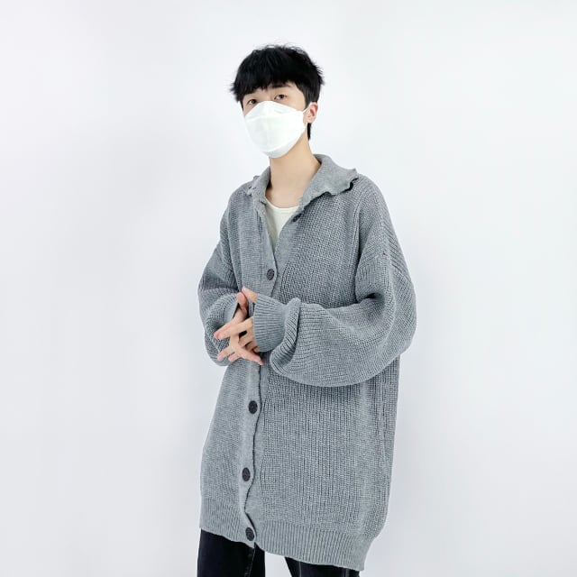【予約販売】カーディガン ハイネック ニット ボタン ユニセックス セーター ペア お揃い カップル シンプル ブラック グレー オーバーサイズ メンズ レディース シンプル こなれ感 ストリート お洒落 韓国 トレンド 秋冬 M/L