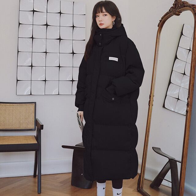 ダウンコート レディース アウター ロングコート ロング丈 もこもこ フード付き おしゃれ シンプル かっこいい 防寒 秋冬 ベージュ/ブラック XS/S/M/L/XL/2XL