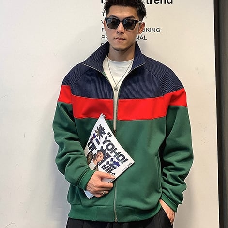 【予約販売】ブルゾン アウター配色 アメカジ ブルー/グリーン コーデュロイ 防寒 ジャケット ショート丈 メンズ カジュアル 男前 こなれ感 お洒落 韓国 トレンド 秋 冬 M/L/XL/2XL