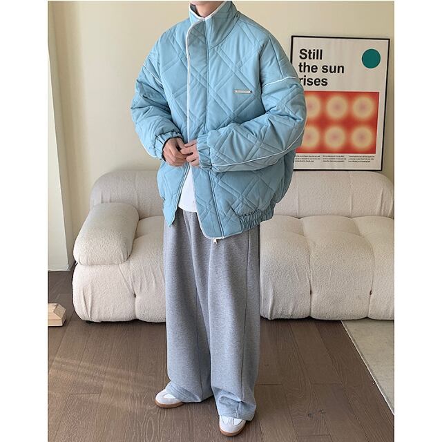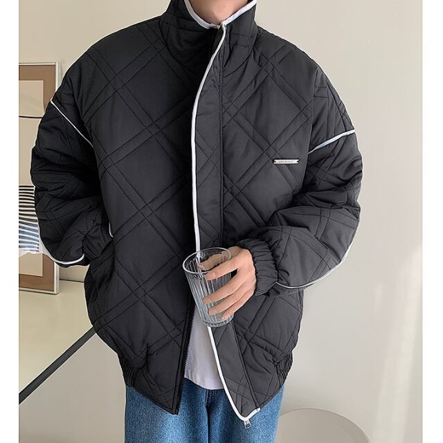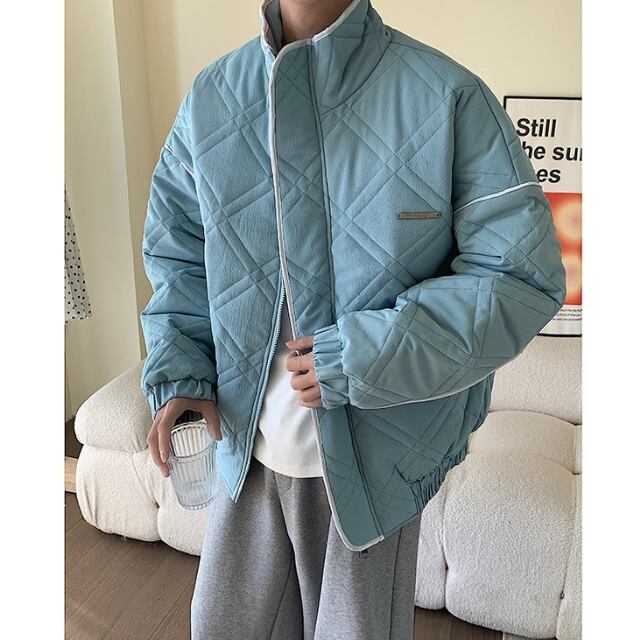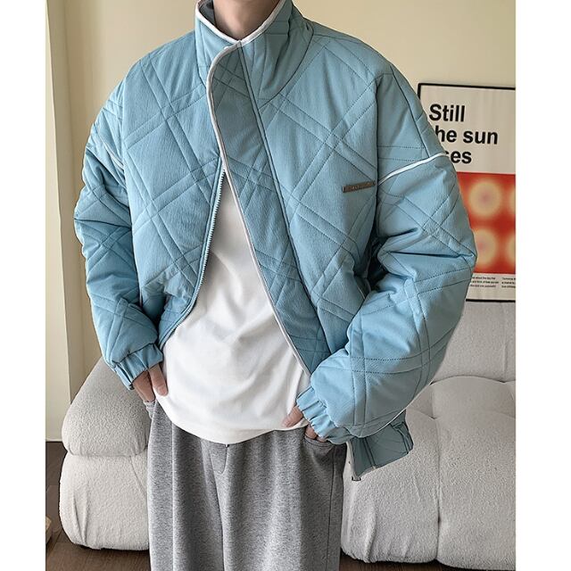【予約販売】ブルゾン アウター キルティング 冬 防寒 ブラック/ブルー/オフホワイト ジャケット ショート丈 メンズ カジュアル 男前 こなれ感 お洒落 韓国 トレンド 秋 冬 M/L/XL/2XL