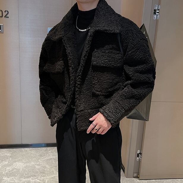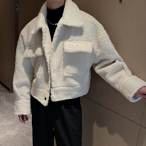 【予約販売】ブルゾン アウター ボア もこもこ 総ボア 冬 防寒 ブラック/オフホワイト ジャケット ショート丈 メンズ カジュアル 男前 こなれ感 お洒落 韓国 トレンド 秋 冬 M/L/XL