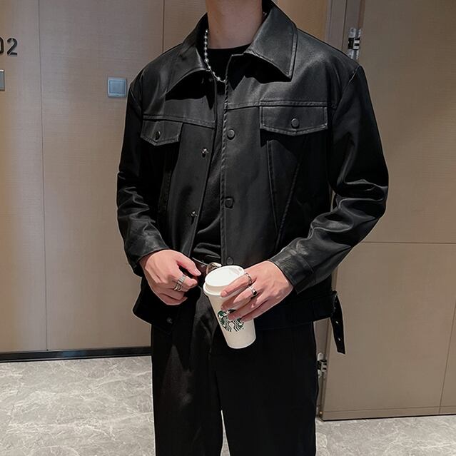 【予約販売】ブルゾン アウター 無地 冬 防寒 レザー ブラック ジャケット ショート丈 メンズ カジュアル 男前 こなれ感 お洒落 韓国 トレンド 秋 冬 M/L/XL