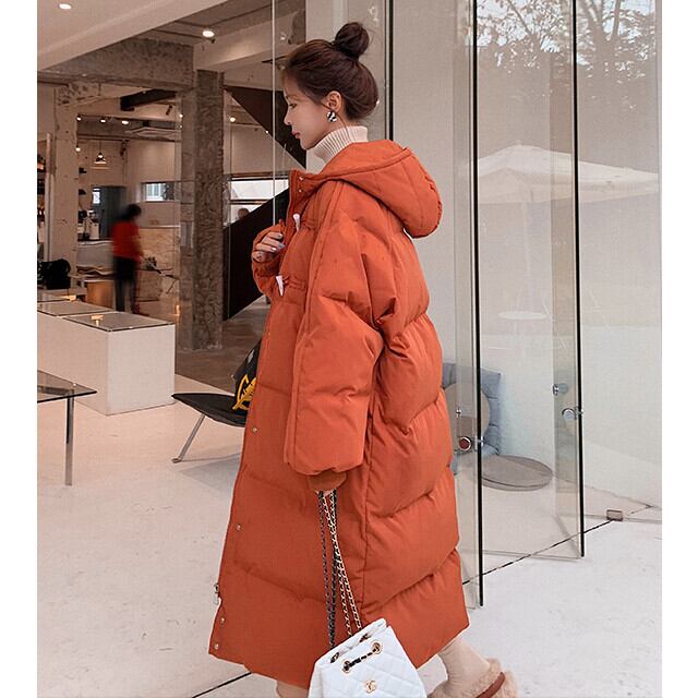 ダウンコート レディース アウター ロング丈 ロングコート フード フーディー もこもこ おしゃれ シンプル かっこいい カジュアル こなれ感 防寒 秋冬 オレンジ/イエロー XS/S/M/L/XL/2XL