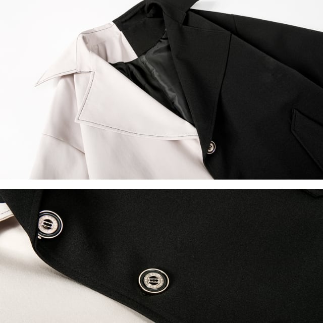 【予約販売】コート チェスターコート アウター ミドル丈フード付き 防寒 メンズ ビジネス ブラック ホワイト モノトーン バイカラー シンプル 防寒 お洒落 こなれ感 ベーシック 秋冬 大きいサイズ M/L/XL/2XL/3XL