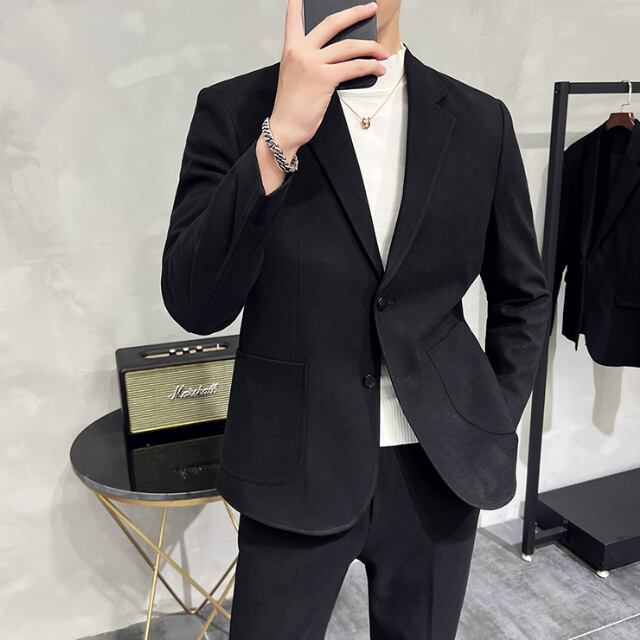 【予約販売】メンズ セットアップ スーツ 無地 シングル シック スリム シンプル 韓国 男前 コーヒー/グレー/ブラック ジャケット パンツ セット セットアップ ビジネス 通勤 フォーマル パーティ 二次会 同窓会 結婚式 韓国 こなれ感 トレンド 大きいサイズ M/L/XL/2XL/3XL/4XL