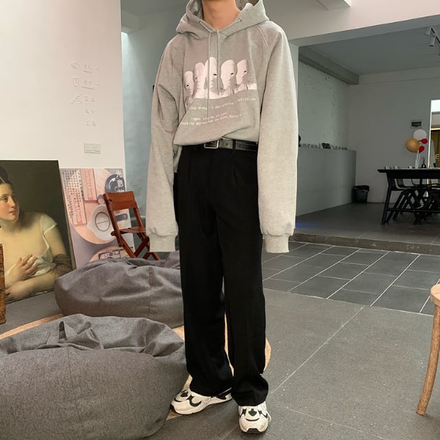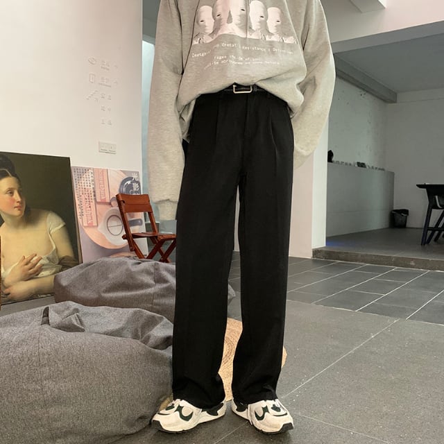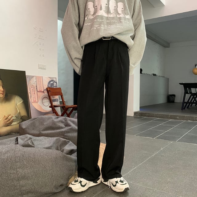 【予約販売】 ボトムス メンズ ワイドパンツ ストレート グレー ブラック スラックス カジュアル こなれ感 お洒落 韓国 トレンド S/M/L/XL/
