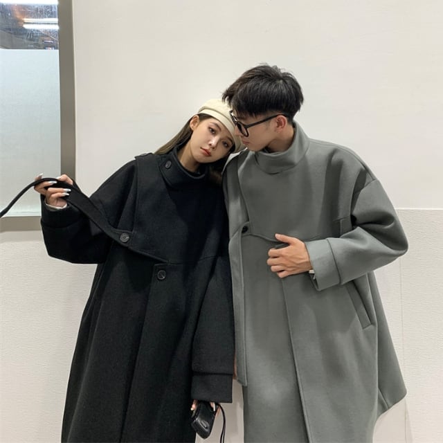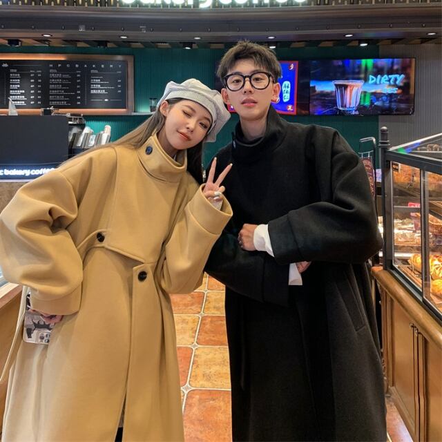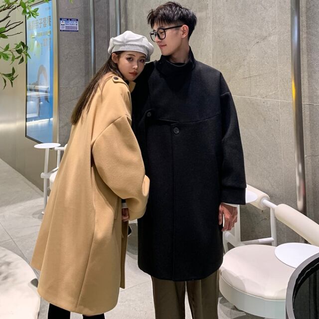 【予約販売】チェスターコート アウター コート スタンドカラー ミディアム丈 ブラック グレー ベージュ メンズ ユニセックス ペア シンプル 防寒 韓国 お洒落 こなれ感 ベーシック 秋冬 大きいサイズ S/M/L/XL/2XL