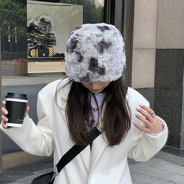 ハット バケットハット レディース 帽子 バケハ もふもふ ふわふわ 秋冬 あたたかい おしゃれ ニュアンスカラー こなれ感 スタイリッシュ ラビットフェイクファー ブラック/カーキ/グレー