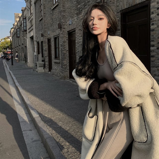 ロングコート レディース リバーシブル 両面 オーバーシルエット もこもこ フリース あったか 秋冬 ブラック アイボリー