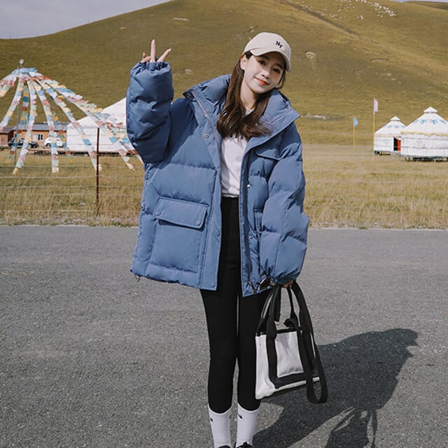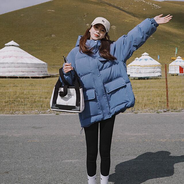 ダウンジャケット レディース アウター 防寒 あったか オーバーシルエット フード付き フーディ アウトドア おしゃれ カジュアル ブルー/ブラック/ベージュ S/M/L/XL