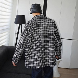【予約販売】テーラードジャケット チェック柄 アウター ジャケット メンズ ブラック オーバーサイズ カジュアル こなれ感 お洒落 韓国トレンド 春 秋 冬 S/M/L/XL