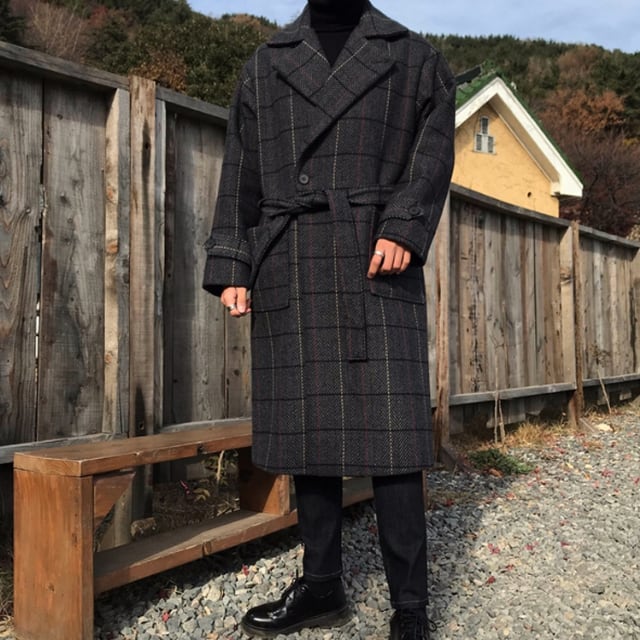 【予約販売】コート チェスターコート アウター ロング丈 シンプル チェック柄 ビジネス 防寒 メンズ グレー 男前 シック 防寒 お洒落 こなれ感 ベーシック 秋冬 大きいサイズ M/L/XL/2XL/3XL