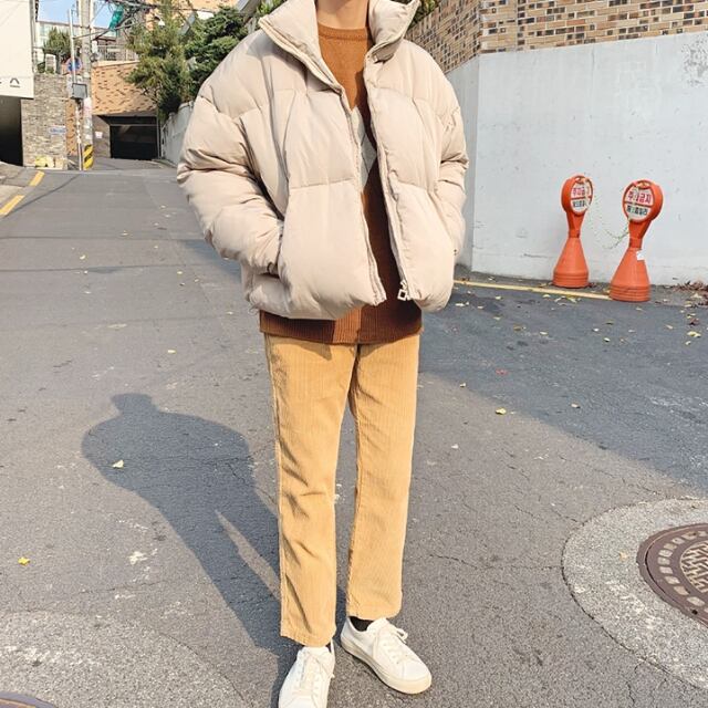 【予約販売】ダウンジャケット アウター ショート丈 シンプル 防寒 メンズ グリーン/クリーム 防寒 お洒落 こなれ感 ベーシック 秋冬 大きいサイズ M/L/XL