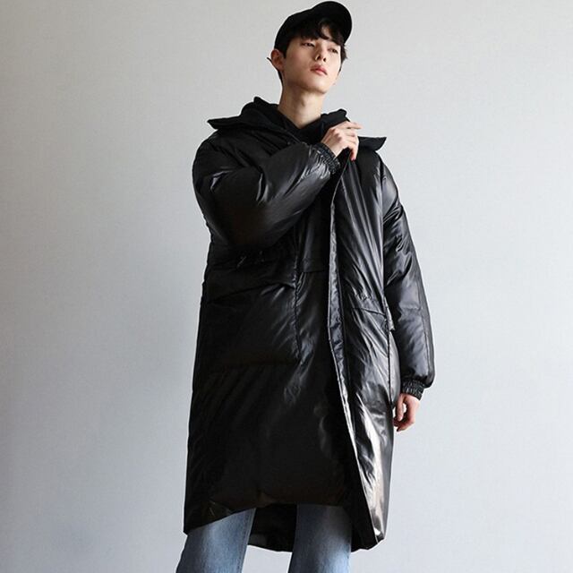 【予約販売】ダウンコート アウター ロング丈 シンプル ハイネック フード 防寒 メンズ ブラック 防寒 お洒落 こなれ感 ベーシック 秋冬 大きいサイズ M/L/XL