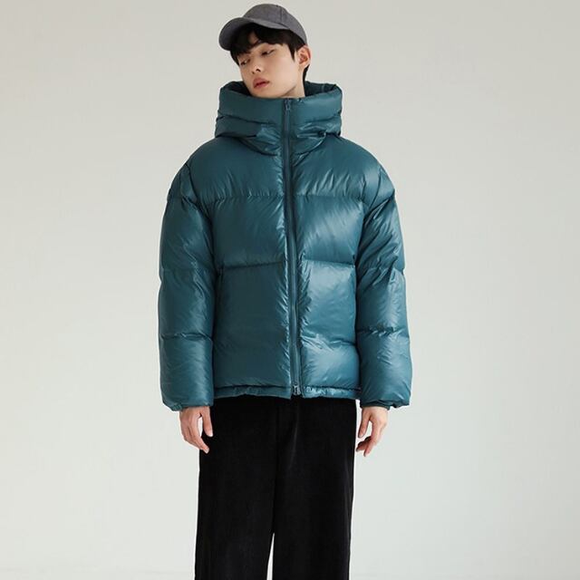 【予約販売】ダウンジャケット アウター ショート丈 フード シンプル ハイネック 防寒 メンズ ブルー防寒 お洒落 こなれ感 ベーシック 秋冬 大きいサイズ M/L/XL