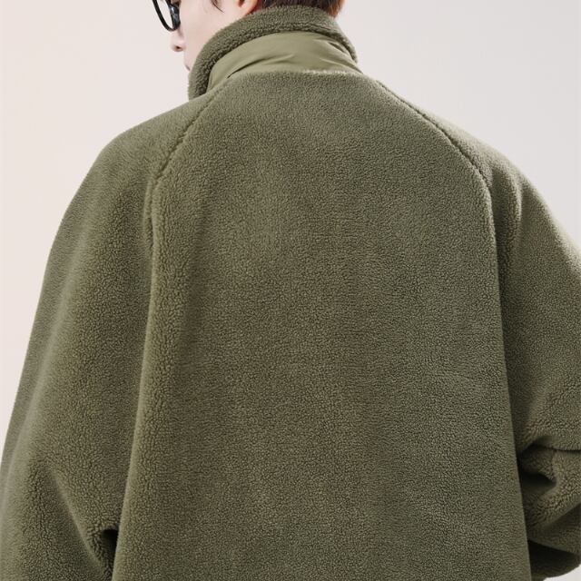 【予約販売】ボアジャケット フリース アウター ショート丈 スタンドカラー ブラック カーキ シンプル 防寒 メンズ 防寒 お洒落 こなれ感 ベーシック 秋冬 大きいサイズ M/L/XL/2XL