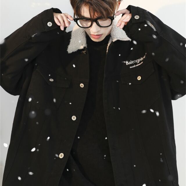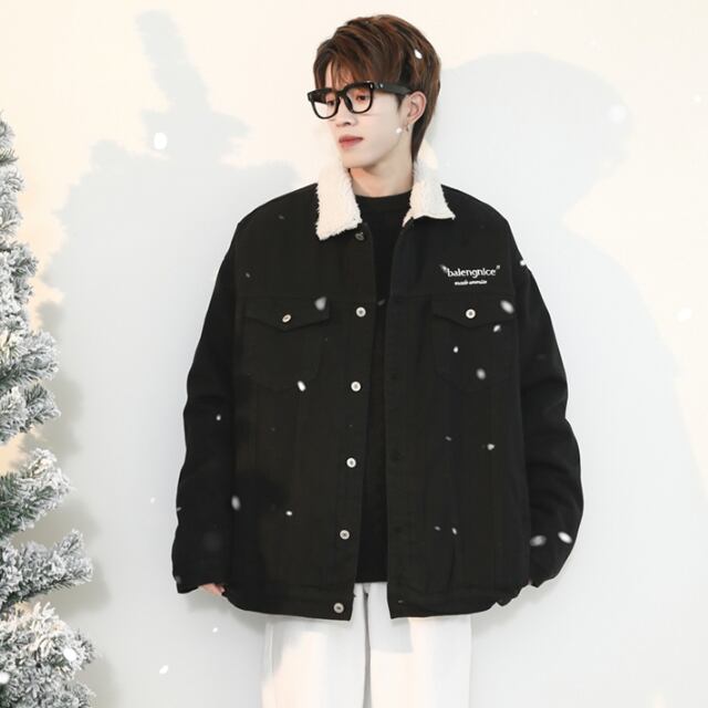 【予約販売】デニムジャケット アウター 裏ボア ショート丈 ボア襟 ホワイト/ブラック/ブルー シンプル 防寒 メンズ 防寒 お洒落 こなれ感 ベーシック 秋冬 大きいサイズ M/L/XL/2XL