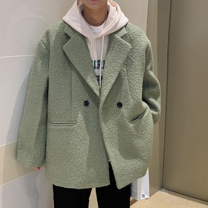【予約販売】ジャケット 無地 もこもこ 厚手 アウター メンズ グリーンル/ブラック/クリーム オーバーサイズ カジュアル こなれ感 お洒落 韓国トレンド 秋 冬 M/L/XL/2XL