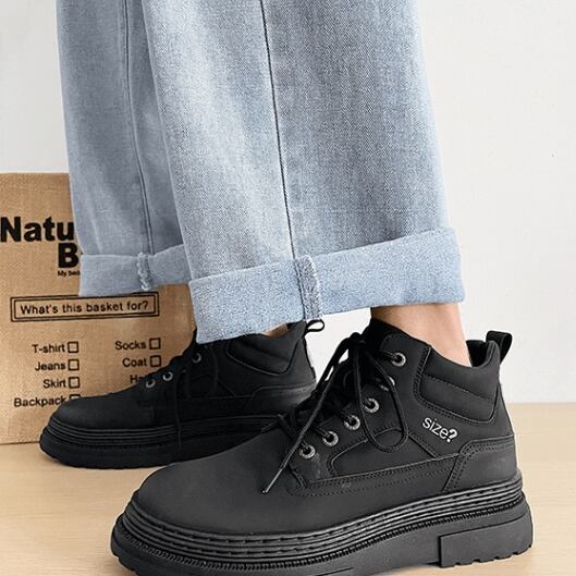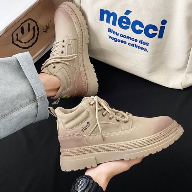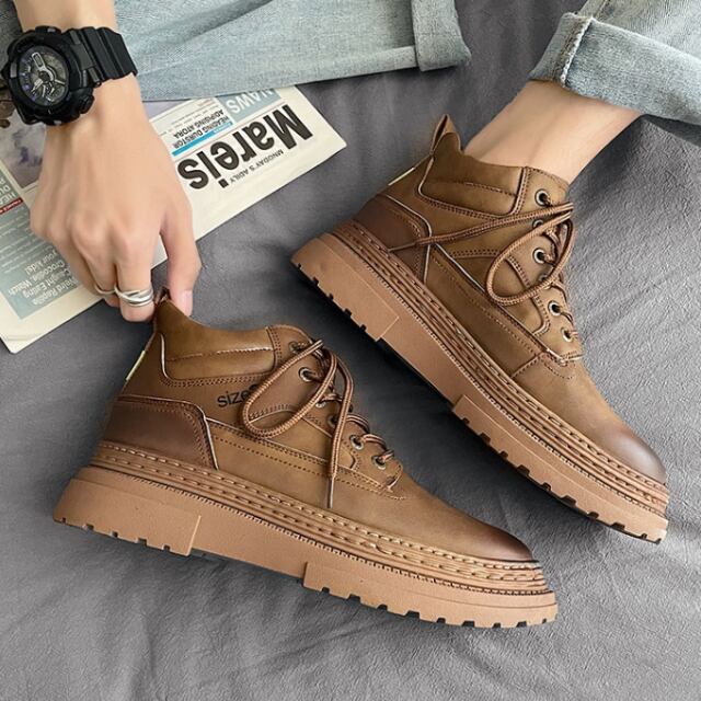 【予約販売】 スニーカー ハイカット シューズ メンズ 厚底 編み上げ ブラック/ブラウン/グレー レースアップ シューズ 靴 厚底 お洒落 カジュアル シック 24.5cm/25cm/25.5cm/26cm/26.5cm/27cm
