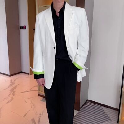 【予約販売】ジャケット 無地 個性的 差し色 メンズ 袖 折り返し ブラック ホワイト ドレスアップ シック こなれ感 お洒落 韓国 トレンド 秋 冬 S/M/L