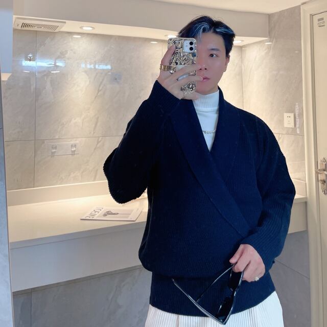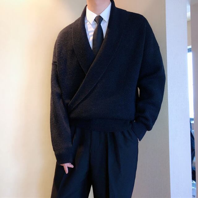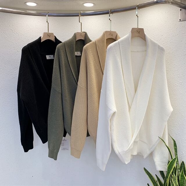 【予約販売】ニット セーター 無地 Vネック 変形デザイン カシュクール ブラック/ホワイト/ベージュ オーバーサイズ メンズ シンプル こなれ感 ストリート お洒落 韓国 トレンド 秋冬 M/L/XL