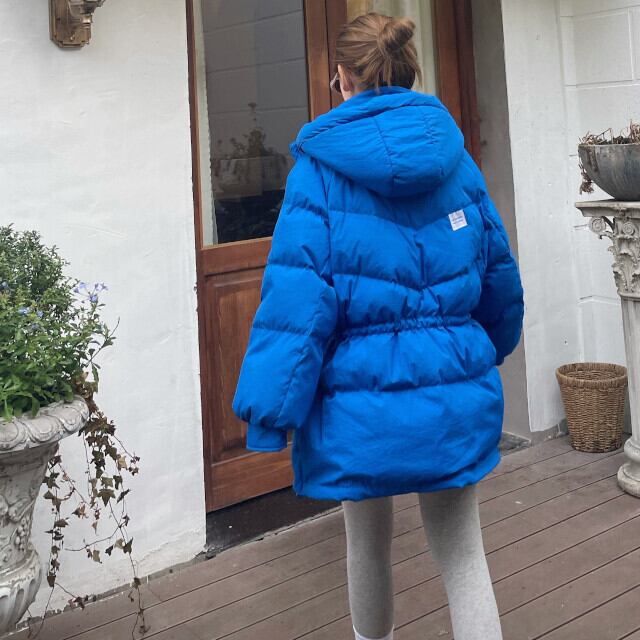 ダウンジャケット ミディアム丈 レディース アウター ダウン 暖かい フード 秋冬 防寒 お出かけ おしゃれ ハイセンス こなれ感 カラバリ豊富 ブルー/ピンク/ブラック/ホワイト S/M