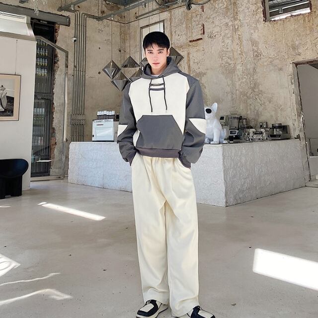 【予約販売】パーカー フーディー シンプル 長袖 メンズ グレー シンプル バイカラー ポケット 無地 カジュアル こなれ感 お洒落 韓国 トレンド 冬秋春 M/L/XL